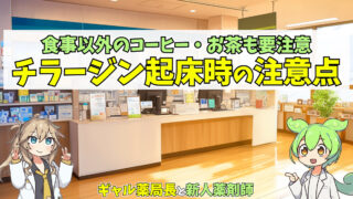 チラージンS錠の用法が「朝食後」から「起床時」に変更される理由を若手薬剤師向けに解説。食事やコーヒー・お茶による吸収低下のメカニズムや、酸化マグネシウム・鉄剤等とのキレート形成を防ぐための疑義照会ポイント、服薬指導時の「食事までの間隔」の伝え方をまとめました。