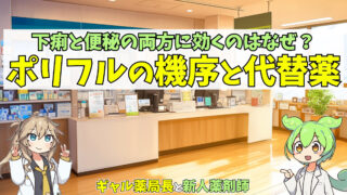 ポリフル出荷調整でお悩みの新人薬剤師必見!IBS(過敏性腸症候群)でポリフルが下痢と便秘の両方に効くメカニズムから、イリボーやリンゼスなど症状別の代替提案、イリボーの男女別用量の違いまで、現場ですぐ使える服薬指導と処方監査のポイントを解説します。