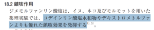 添付文書には「ジメモルファンはコデインやデキストロメトルファンよりも優れた鎮咳効果を発揮する」と記載があります。